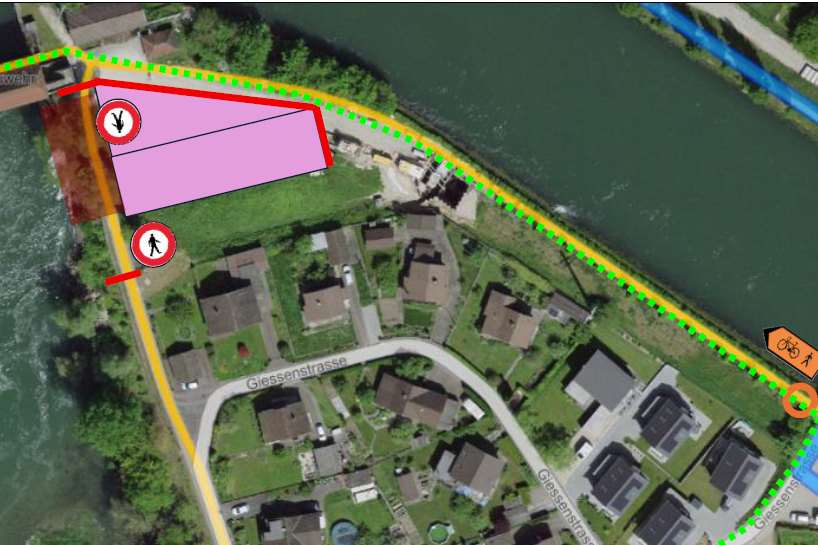 - No. Staying in the area of the weir is risky and can be dangerous. This is because a large amount of water can be released over the weir at any time – even in fine summer weather – for example, in the event of a malfunction of the machinery in the power plant in Niedergösgen.
