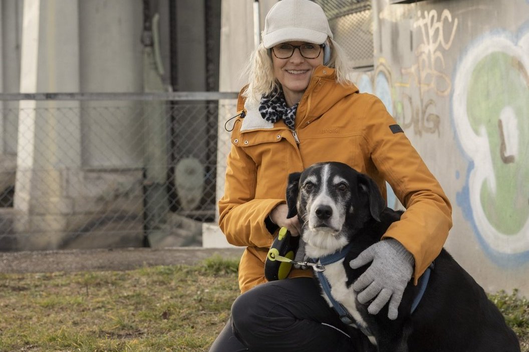 Die Stimme der Spaziergängerin mit Hund