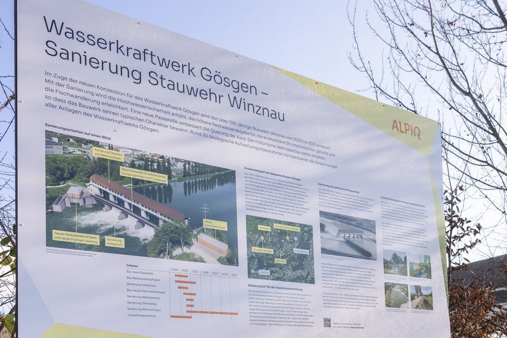 The Winznau weir on the Aare near Olten will be renovated over the next few years to comply with guidelines and regulations on flood protection. Alpiq Hydro Aare AG will sustainably renovate the facility between 2025 and 2031.