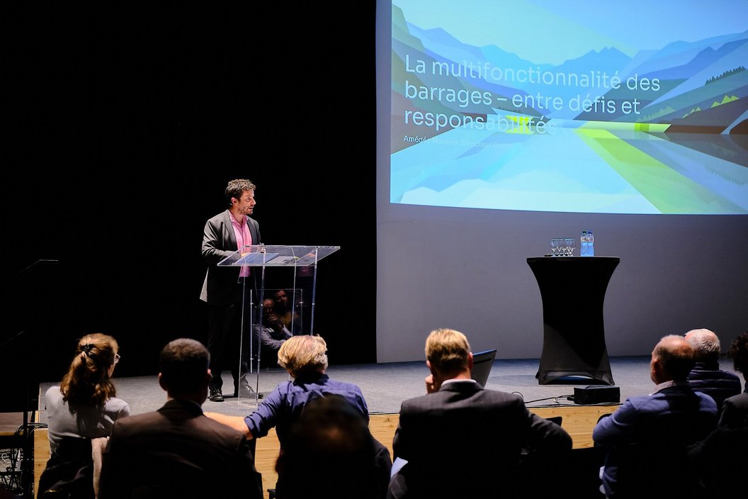 The #prixalpiq award ceremony concluded a symposium on the multi-functionality of dams. Andréa Savoy, a PhD student at the University of Lausanne, presented the results of her research. Since 2020, she has studied the emergence and evolution of this concept, as well as how different actors perceive the multi-functionality of water and hydroelectric infrastructure. She has also explored the institutional rules, the configuration of the actors involved and the effect of governance on the durability of hydropower management. Bringing together stakeholders from within the industry as well as from political and academic circles, two round tables gave the participants of this symposium a comprehensive view of this topic.